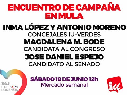 Nos visitan Magdalena M. Bode como candidata al Congreso y Jose Daniel Espejo candidato al Senado. También estarán presentes nuestros Concejales Inma López y Antonio Moreno y el Coordinador de Local y Responsable de Política Municipal de IUVRM José Luis Álvarez-Castellanos.