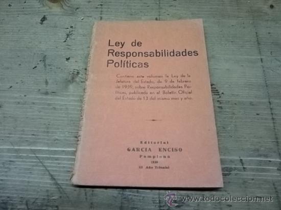 » Así, en el sentido puesto de manifiesto, la ley de Responsabilidades Políticas se convirtió en uno de los instrumentos represivos, constitutivos de la maquinaria penal del régimen franquista. Surgida con vocación política, adquirió tintes penales, al configurarse como complemento de sanción de todas aquellas conductas que conformaban el delito de rebelión, implicando una mera oposición ideológica a los postulados y principios del Movimiento Nacional.
