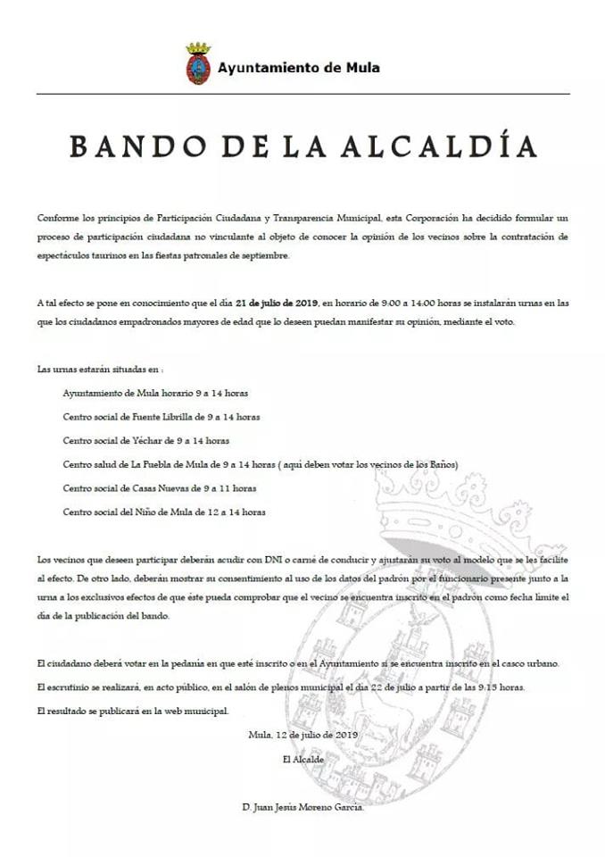 Nos alegra que se haga está consulta, como propuso Izquierda Unida Mula, pero falta que se indique el importe de la subvención del Ayuntamiento.