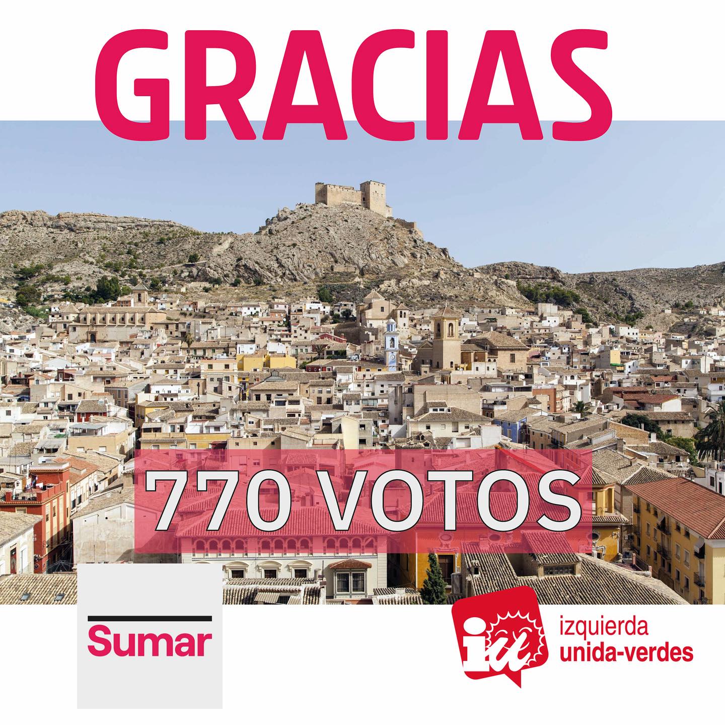 770 Gracias a todas y cada una de ls muleñas y muleños que han confiado @sumar_oficial en unas elecciones generales muy complicadas y con tanto en juego. Se consolida el proyecto de Sumar y esperamos y deseamos que llegue a todos los rincones del Estado siendo en Mula referente progresista para un proyecto de pueblo con futuro.