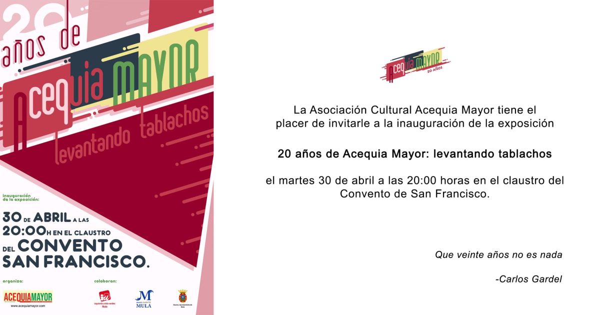 INVITACIÓN EXPOSICIÓN 20 AÑOS DE ACEQUIA MAYOR: LEVANTANDO TABLACHOS